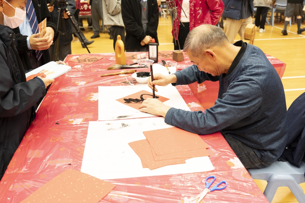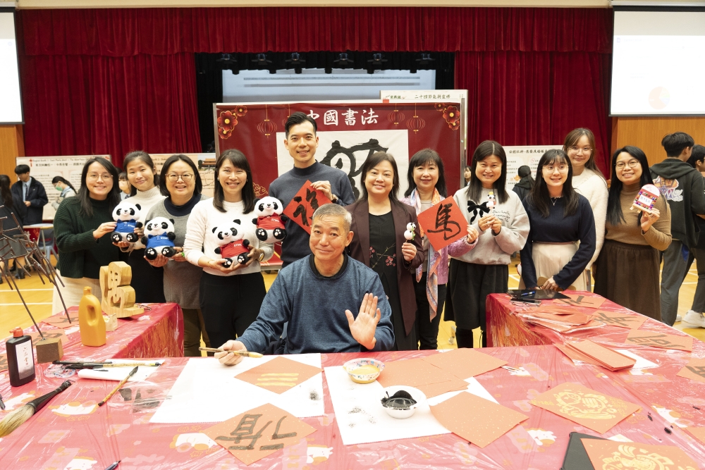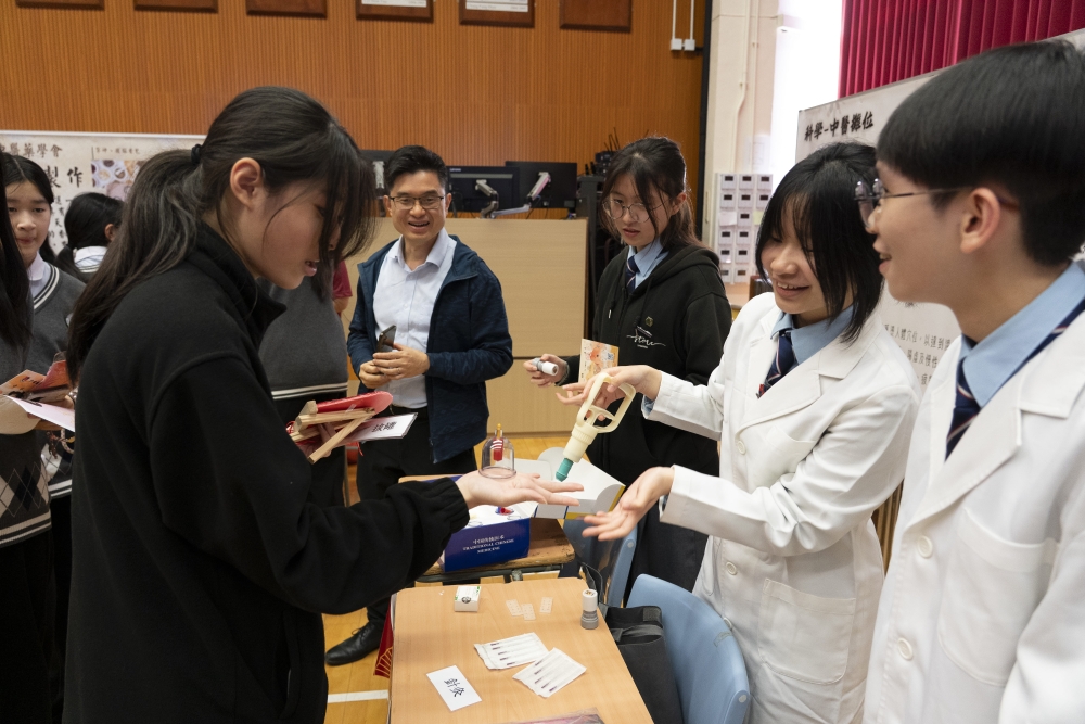 A highlight was the booths held by different subjects and parties, including Chinese, Chinese History, Science, Maths, English, Citizenship & Social Development, Chess Club and Religious Committee. Besides, all F.3 classes were responsible for their booths in promoting intangible Chinese heritage ranging from Chinese knots, flour dolls, seals to flower plaques.