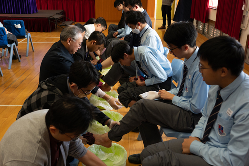 眾師長以身作則,效法耶穌為同學洗腳, 樹立僕人領袖的榜樣。