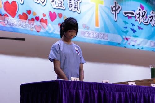 校監余恩明牧師為中一同學按手祝福。