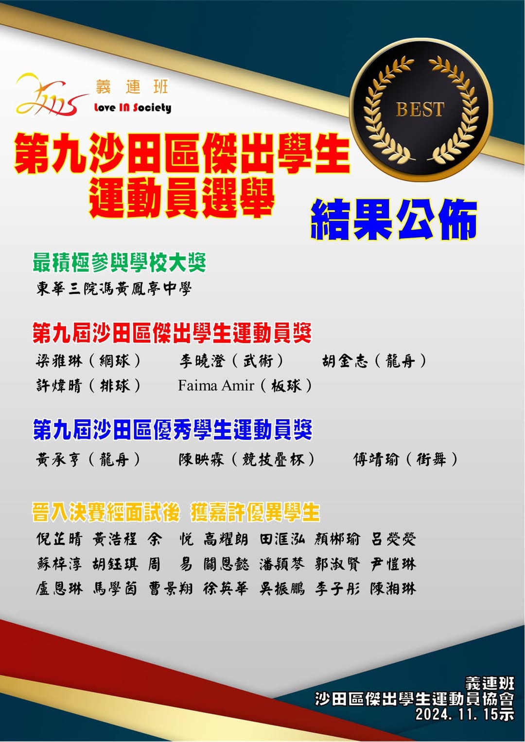 Organiser: Love in Society & Sha Tin District Outstanding Student Athletes Association 義連班及沙田區傑出學生運動員協會
