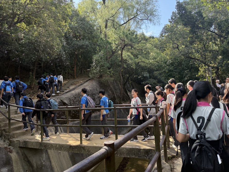 F.3 students hiked 5 km from the school to Lok Fu, passing landmarks such as Amah Rock, the Wilson Trail, and the Reunification Pavilion. Through this challenging journey, students not only trained their physical endurance and will power but also strengthened class cohesion through mutual support. It was a meaningful opportunity to appreciate the local scenery while learning the importance of persistence and teamwork."