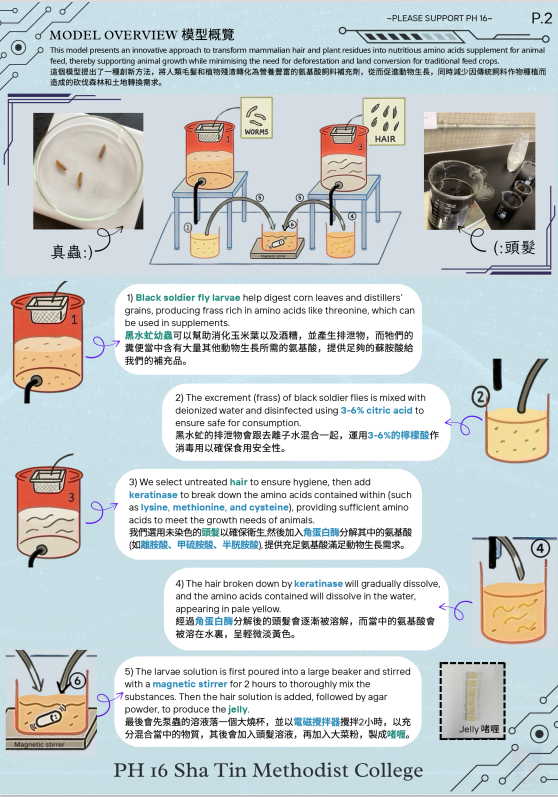 The team designed an innovative model to transform mammalian hair and plant residues into nutritious amino acids as a supplement for animal feed. This approach supports animal growth while minimizing the need for deforestation and land conversion for traditional feed crops, which foster environment harmony and sustainable development.