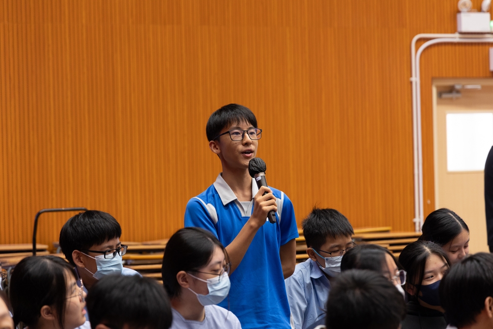Ms Myolie Lau, the Director of Outreach and Education–a charity dedicated to promoting English literacy among the underprivileged students, shared ideas with junior form students on how to build reading habits and select good books to read.