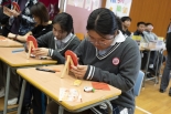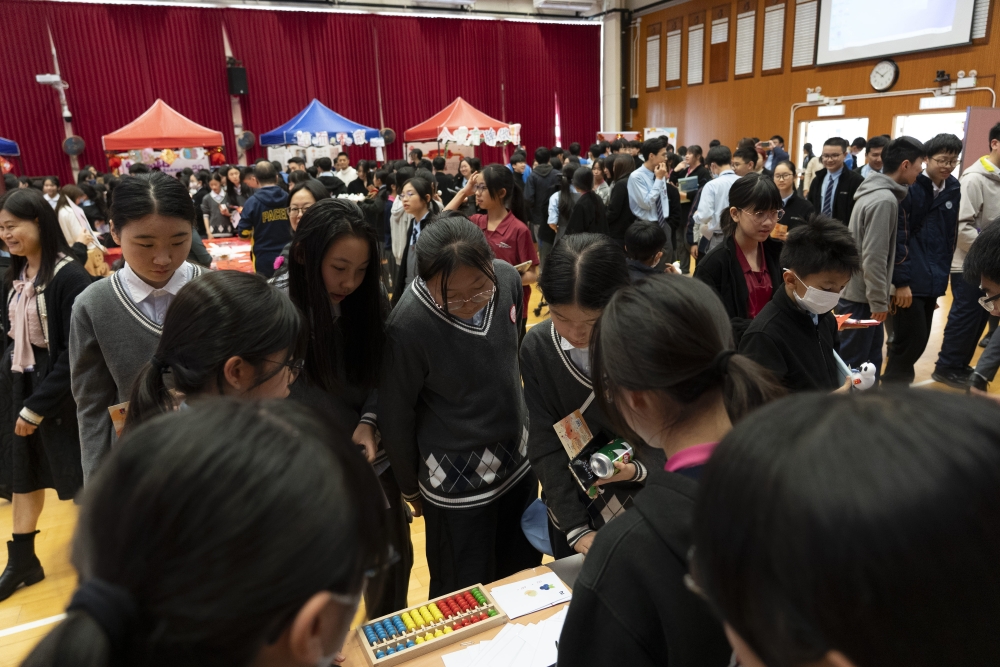 A highlight was the booths held by different subjects and parties, including Chinese, Chinese History, Science, Maths, English, Citizenship & Social Development, Chess Club and Religious Committee. Besides, all F.3 classes were responsible for their booths in promoting intangible Chinese heritage ranging from Chinese knots, flour dolls, seals to flower plaques.