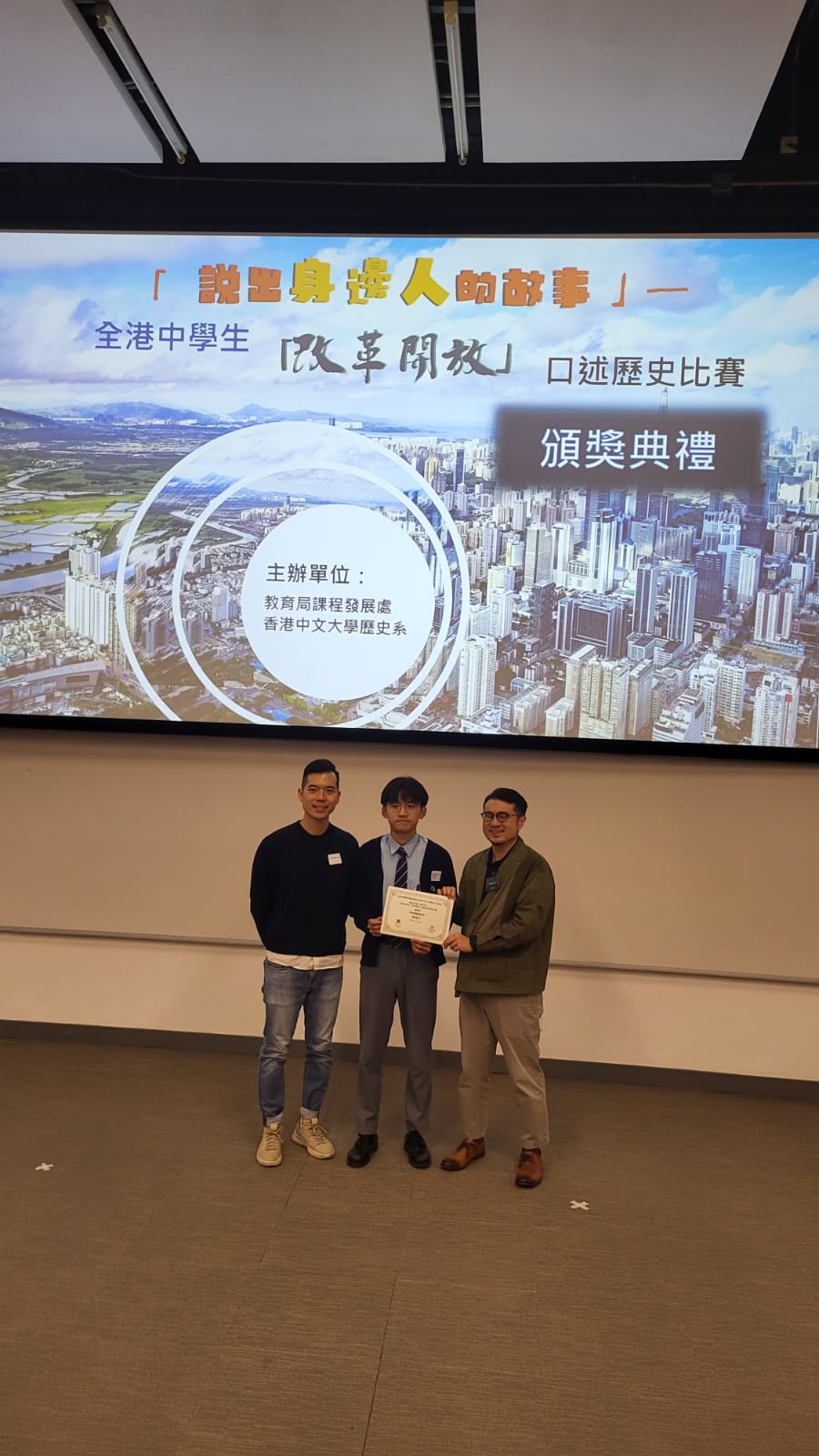The school's History Department participated in a Hong Kong secondary schools’ oral history report competition "Tell the Stories of People Around Us" on the topic "Reform and Opening Up Policies", organized by the Hong Kong Education Bureau and The Chinese University of Hong Kong.