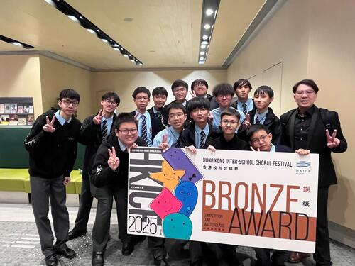 Boys Choral Ensemble won the Bronze Award at the Inter-schools Choral Festival organized by the HKICF. They performed the song "Love of the Past" (當年情).