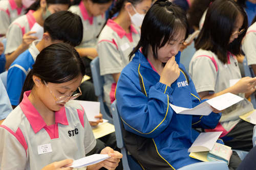 同學在祝福禮上專心認真地看父母給他們的信。